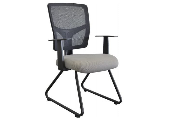 Cadeira Fixa VERTHEBRA Interlocução/Diálogo. Encosto Tela. Assento estofado. Braço Fixo T. Base Fixa Trapezoidal Aço Preta