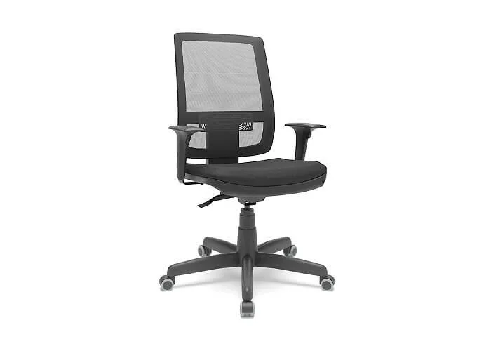 Cadeira Presidente Giratória. Linha BRISA LIGHT com RELAX. Tela. Braços. Base Reta Preta.